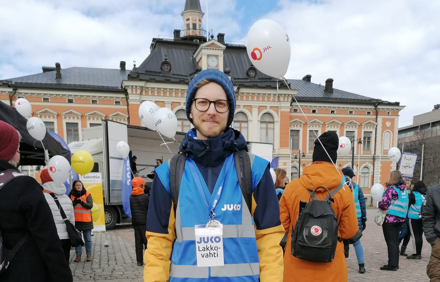 Kuopiolaiselle Samuel Piiroiselle jäi kevään lakoista mieleen yhteisöllinen tunnelma ja ulkopuolisten tsemppaus. Piiroinen on Yhteiskunta-alan korkeakoulutetut YKA ry:n jäsen.